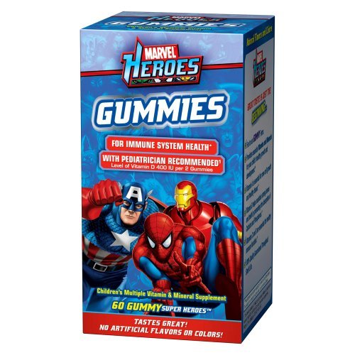 For immune system health. With pediatrician recommended (The American Academy of Pediatrics recommends children and adolescents receive at least 400 IU of vitamin D per day from food or supplements. Wagner, C. et al. Pediatrics. 2008;122:1142-1152). Level vitamin D 400 IU per 2 gummies. Gummy super heroes. Tastes great! No artificial flavors or colors! 3 great soft and chewy flavors: cherry, grape and orange. Spider-Man, Captain America, Iron Man. Great taste is just the beginning: Fun to eat gummy form. Provides essential vitamins and minerals for your child's healthy growth and development. Vitamin A is essential for new cell growth and healthy tissue. Vitamin D helps maintain strong bones and teeth by promoting the absorption of calcium and phosphorus. Vitamins C and D are essential for healthy immune function. (These statements have not been evaluated by the Food and Drug Administration. This product is not intended to diagnose, treat, cure or prevent any disease.) Read moreRelateItems